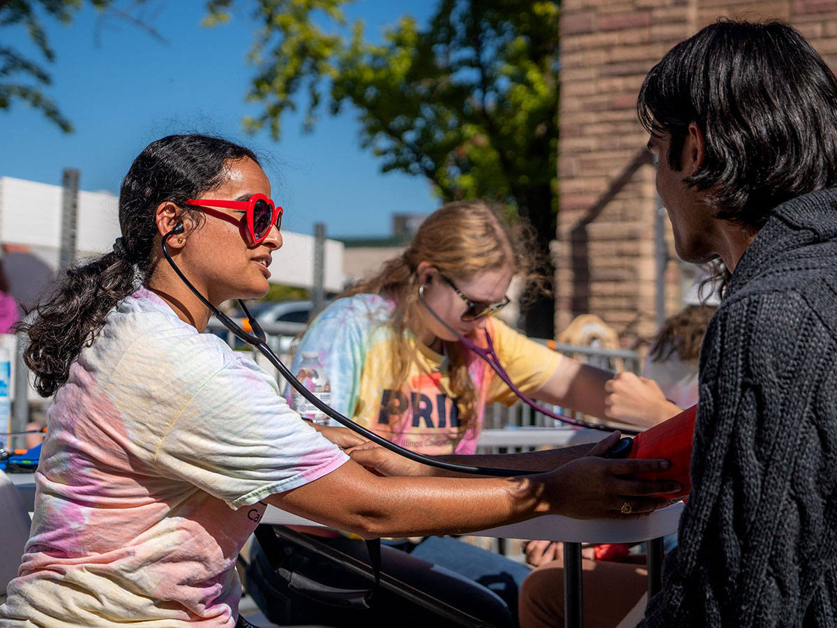 CI MED students, led by the Carle Illinois PRIDE student group, provided educational materials and information affirming LGBTQ+ health care in the community as well as opportunities for attendees to have their vitals checked.