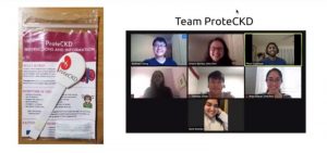 ProteCKD kidney function pre-screening kit. Statistics show people of color are at higher risk for developing kidney disease without being aware of those risks. The pre-screening kit would include a low-cost home urine test strip and educational materials to empower people to make good choices and take charge of their own healthcare. Team members: Carle Illinois medical students Ariana Barreau, Andrew Chang, and Phani Gaddipati; engineering student Priya Kumar and Isabella Lebovic; healthcare provider Sana Kamdar; and community member Thomas Chow. Prize: $5,000