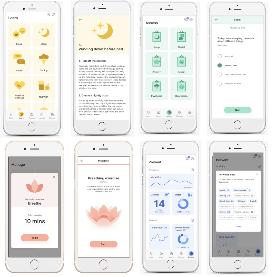 The LAMP Platform taps into patient data from off-the-shelf mobile and wearable technology (smart devices), mental health and fitness apps, and cognitive games like those built into the LAMP system itself. LAMP’s machine-learning algorithms then analyze the data to detect changes in a patient’s mental health status. The system detects patterns around emerging or recurring problems that can inform both population research and direct individual patient care.